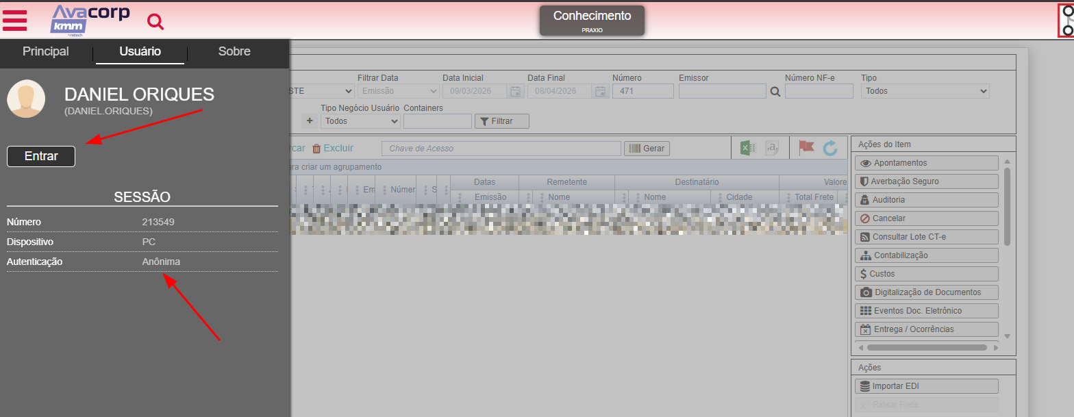 Acessando dessa forma, consegui ter acesso a todo o sistema e executar todos os processos.