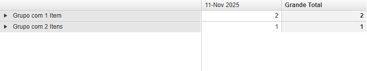 Ao abrir o CrossTab no navegador, podemos perceber uma diferença no resultado do agrupamento com 1 item ou com mais itens: