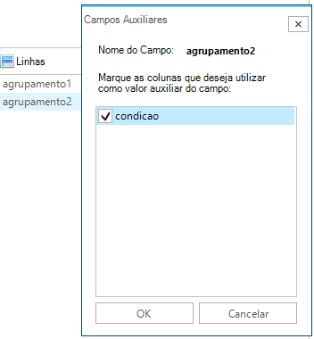 Configure a coluna condicao como campo auxiliar do campo de linha agrupamento2 (agrupamento nível 2)