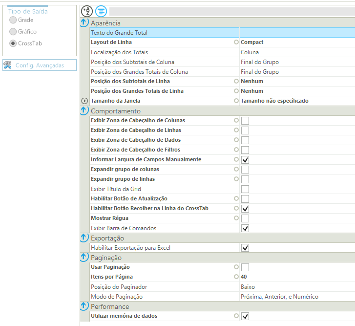 O CrossTab é o componente estilo “Tabela Pivô” do Latromi, onde podemos agrupar valores na intersecção de eixos X (linhas) e Y (colunas).