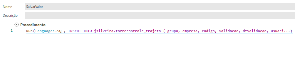 Levando em consideração o cenário informado, seria necessário popular a variável ou usando as ações de Executar código C# ou Popular campos e variáveis, para conseguir usar a ação Executar código SQL com os valores corretos da variável.