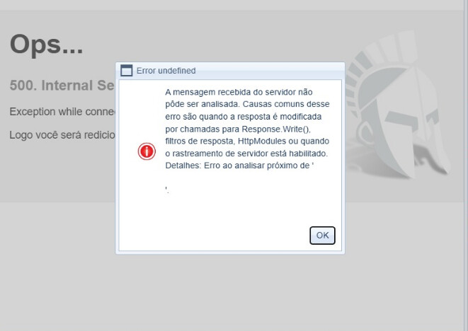 Este erro “Genérico” apresentado no navegador, provavelmente está “mascarando” um outro erro.