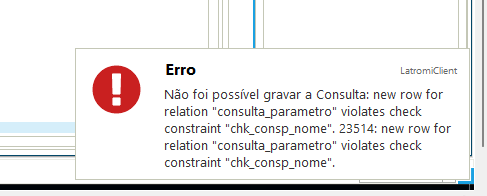 Ao tentar salvar alguns RPTs em consulta no Latromi Client, ocorre o erro abaixo: