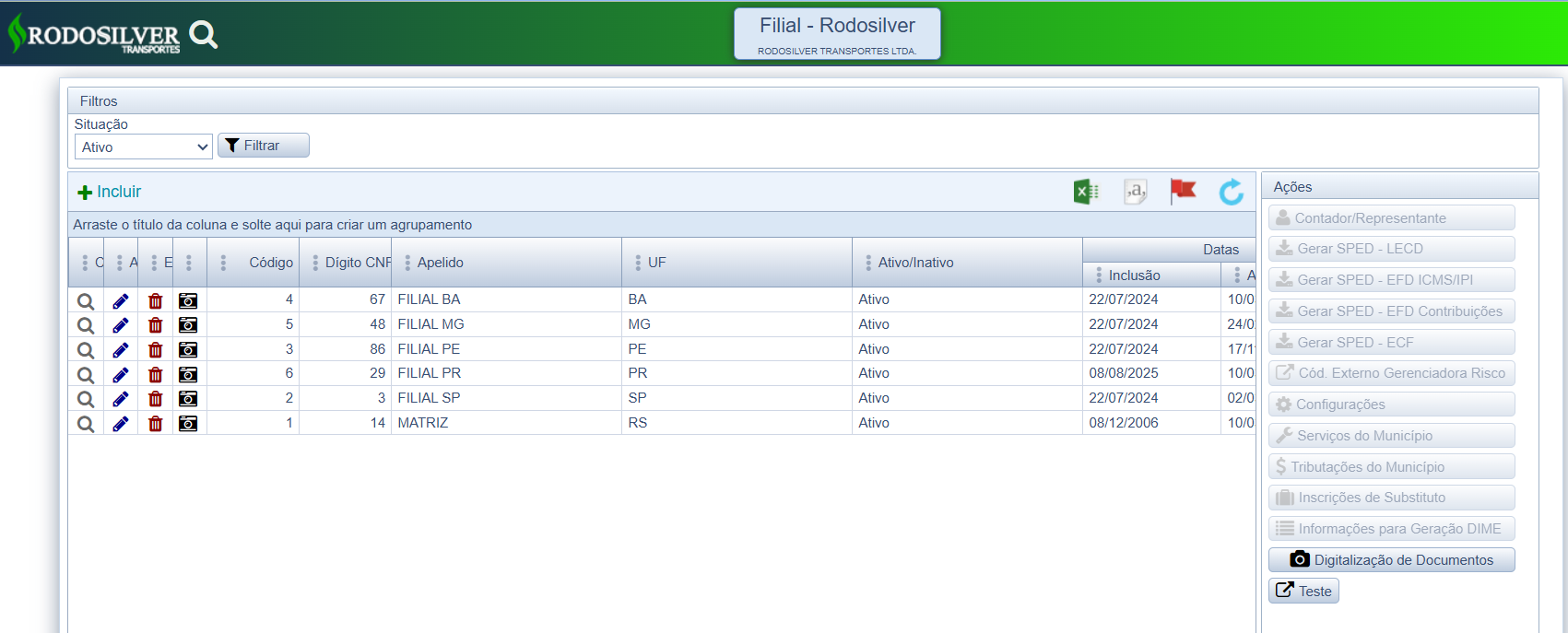 ” para inserir e buscar os dados das nossas filiais.