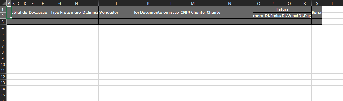 Observação: Caso a consulta, que o extrator de arquivos esteja puxando os dados, tenha algum parâmetro obrigatório e ele não seja informado, a planilha gerada não conterá os dados.