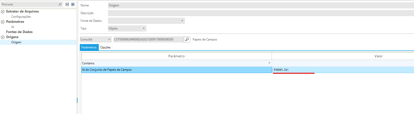 - Adicionar ao extrator de arquivos os parâmetros que irão ser repassados na origem