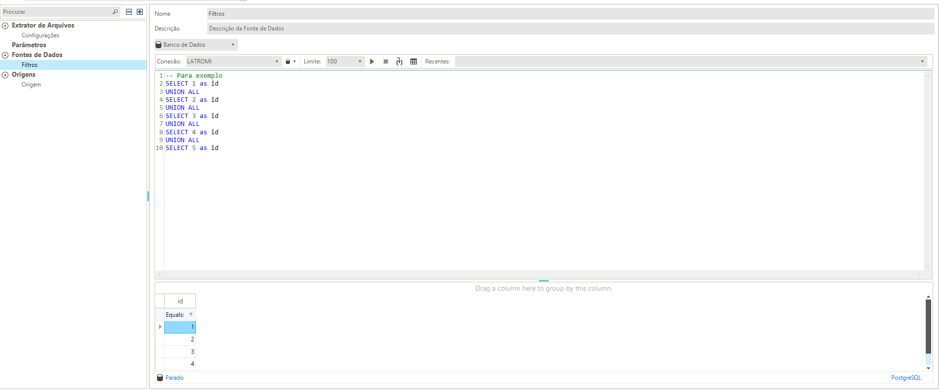- Adicionar uma fonte de dados para o objeto do extrator de arquivos, que conterá as informações de filtro.