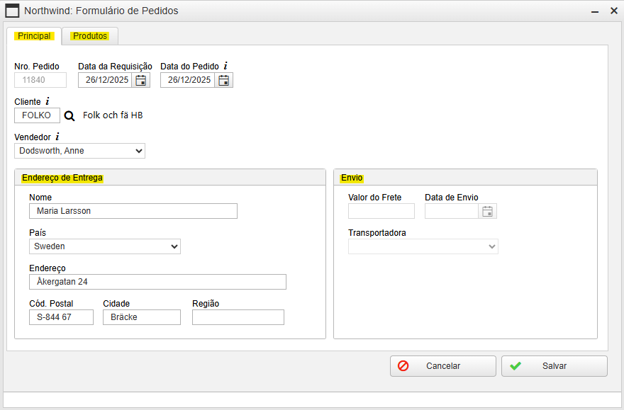 Por exemplo, podemos organizar os campos de telefone e e-mail em um grupo chamado “Dados de Contato” ou separar campos de um documento em guias “Nota Fiscal”, “Produtos” e “Serviços”.