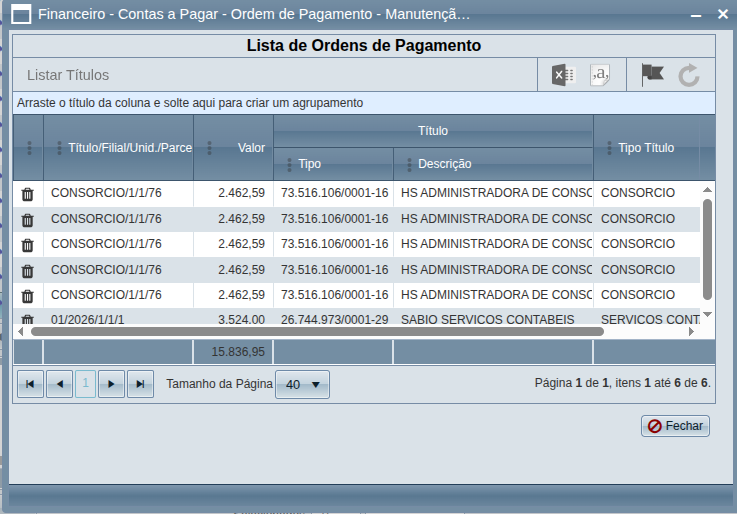 Olá, poderiam verificar o rpt de ordem de pagamento, quando há títulos semelhantes, onde a única diferença é a sequencia, ele está considerando como sendo apenas 1 titulo. Segue exemplo:
