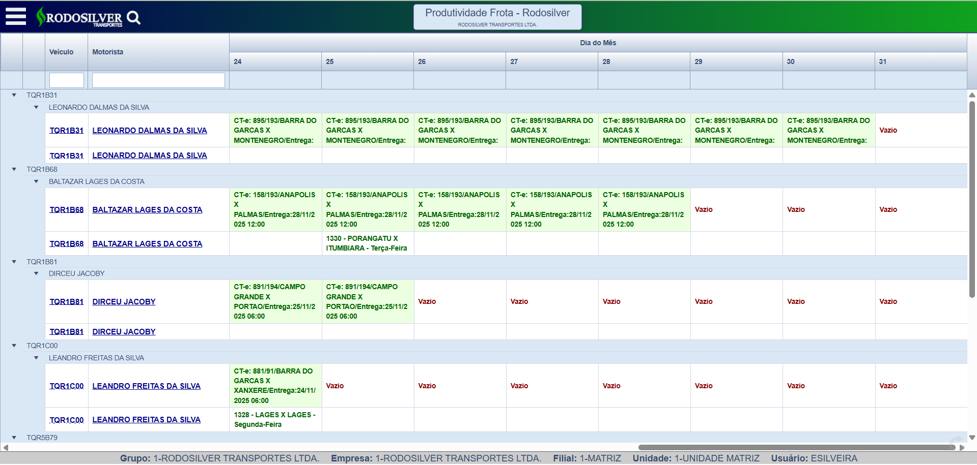 Pessoal, criei uma consulta na qual apresenta a produtividade da frota em tempo real.